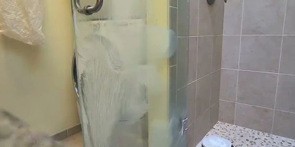 Before shower glass restoration and sealing