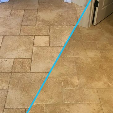 Our approach is to scrub deep into the pores of the tile and grout to remove existing dirt, oils and bacteria to clean and sanitize the tile and grout